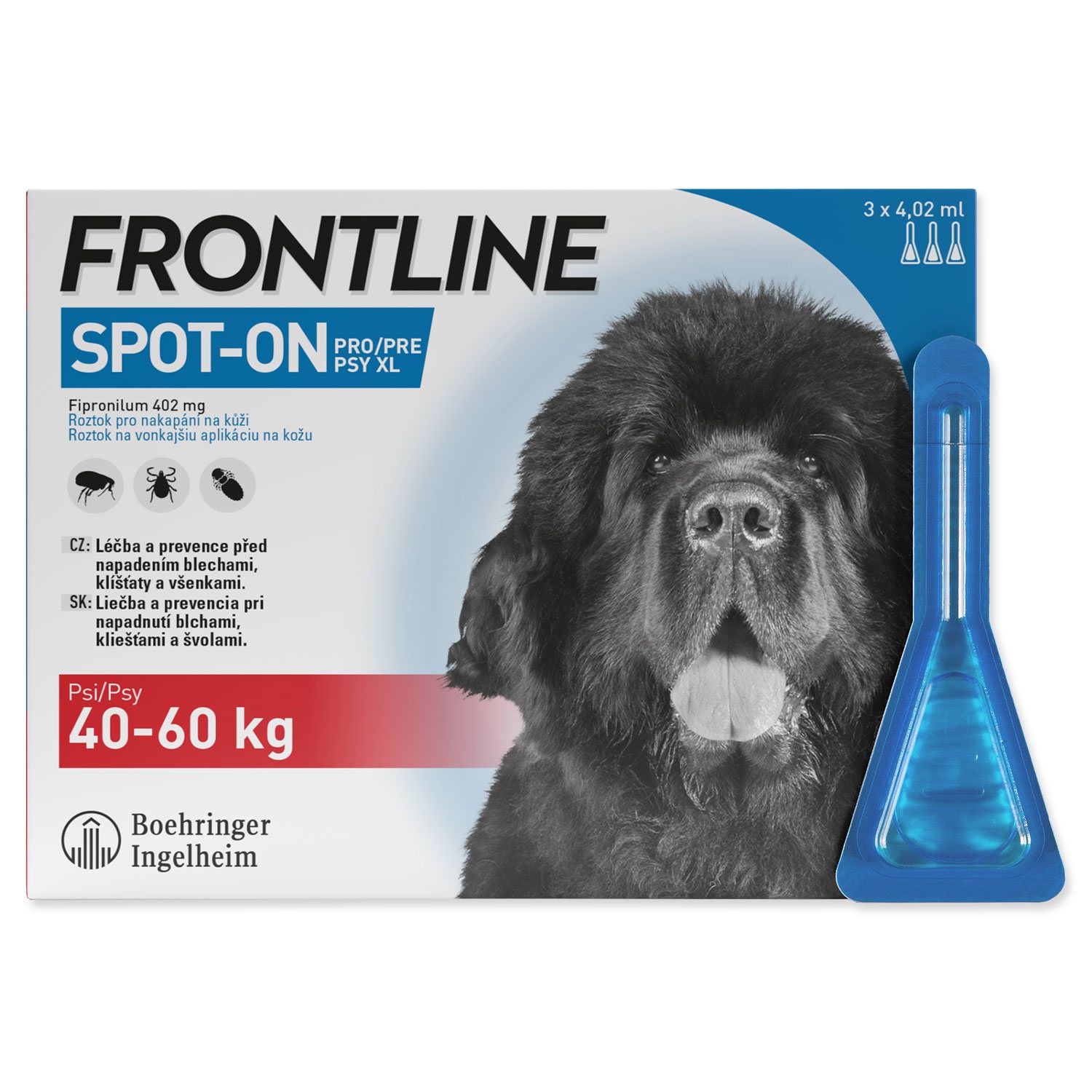 Frontline Combo Spot-on Dog XL 1x4,02ml - velmi účinný přípravek k ochraně psů před blechami, klíšťati a všenkami. Frontline Combo účinkuje okamžitě po aplikaci, roztok je zcela voděodolný. Ihned parazity zahubí a zničí všechny larvy a vajíčka. Přípravek nezapáchá, nešpinía nemastí srst.