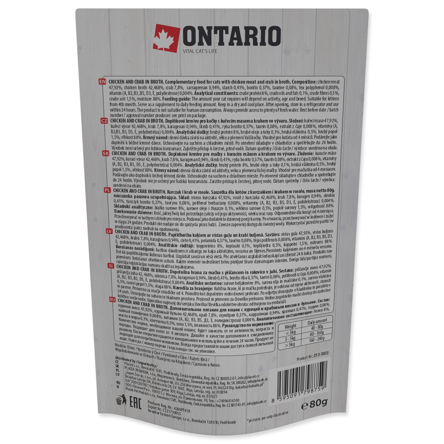 Kapsička Ontario kuře a krab ve vývaru 80g