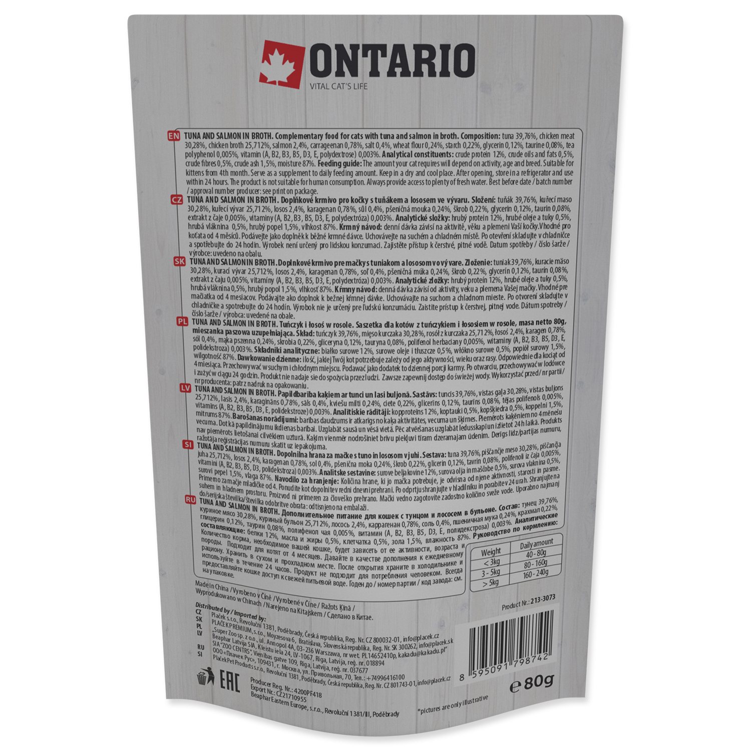 Kapsička Ontario tuňák a losos ve vývaru 80g