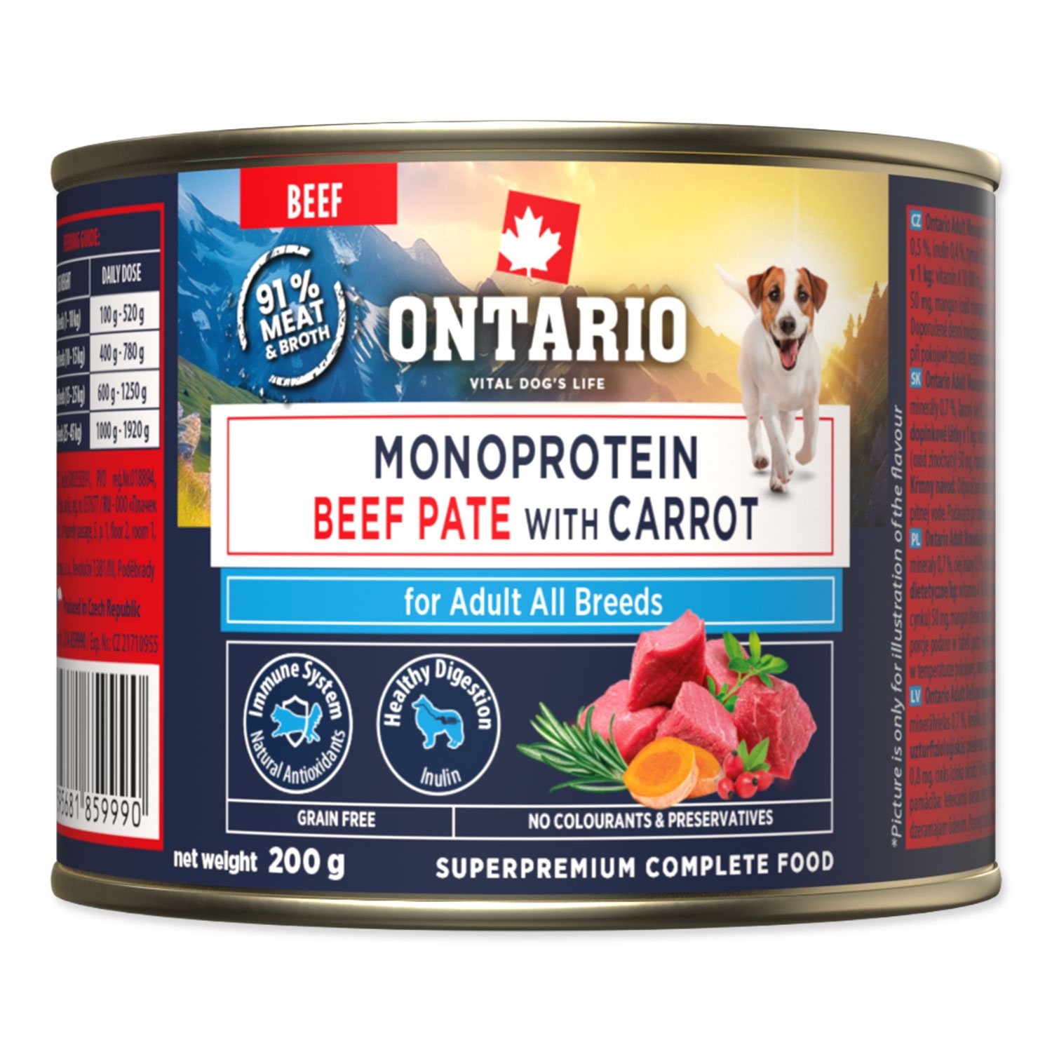 Konzerva Ontario Adult monoprotein hovězí pate s mrkví 200g