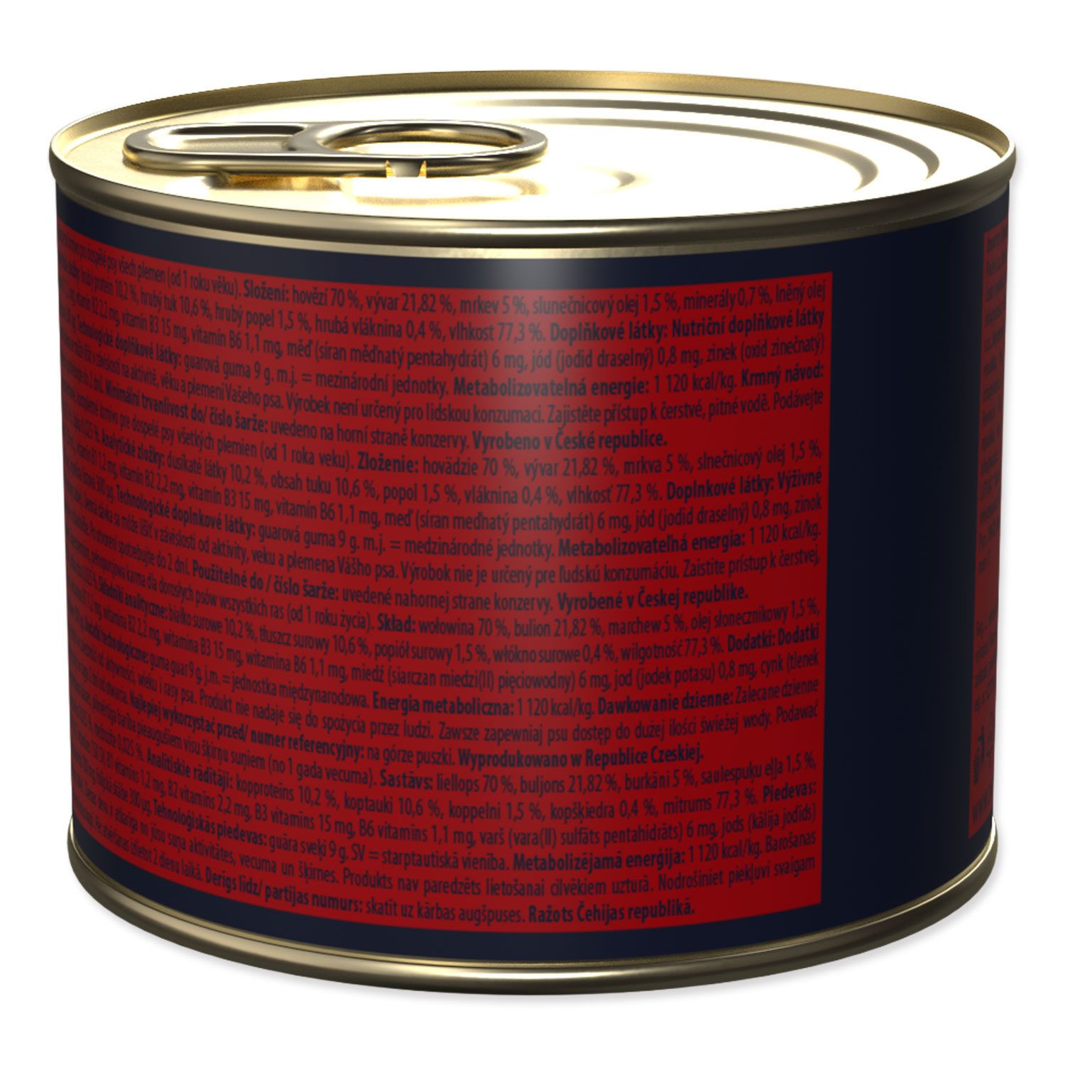 Hledáte sílu hovězího masa a zároveň jistotu pro citlivé zažívání? Naše monoproteinové pate s 91 % masa a vývaru kombinuje silné hovězí maso s mrkví pro energii a zrak. Receptura je vhodná pro psí alergiky.