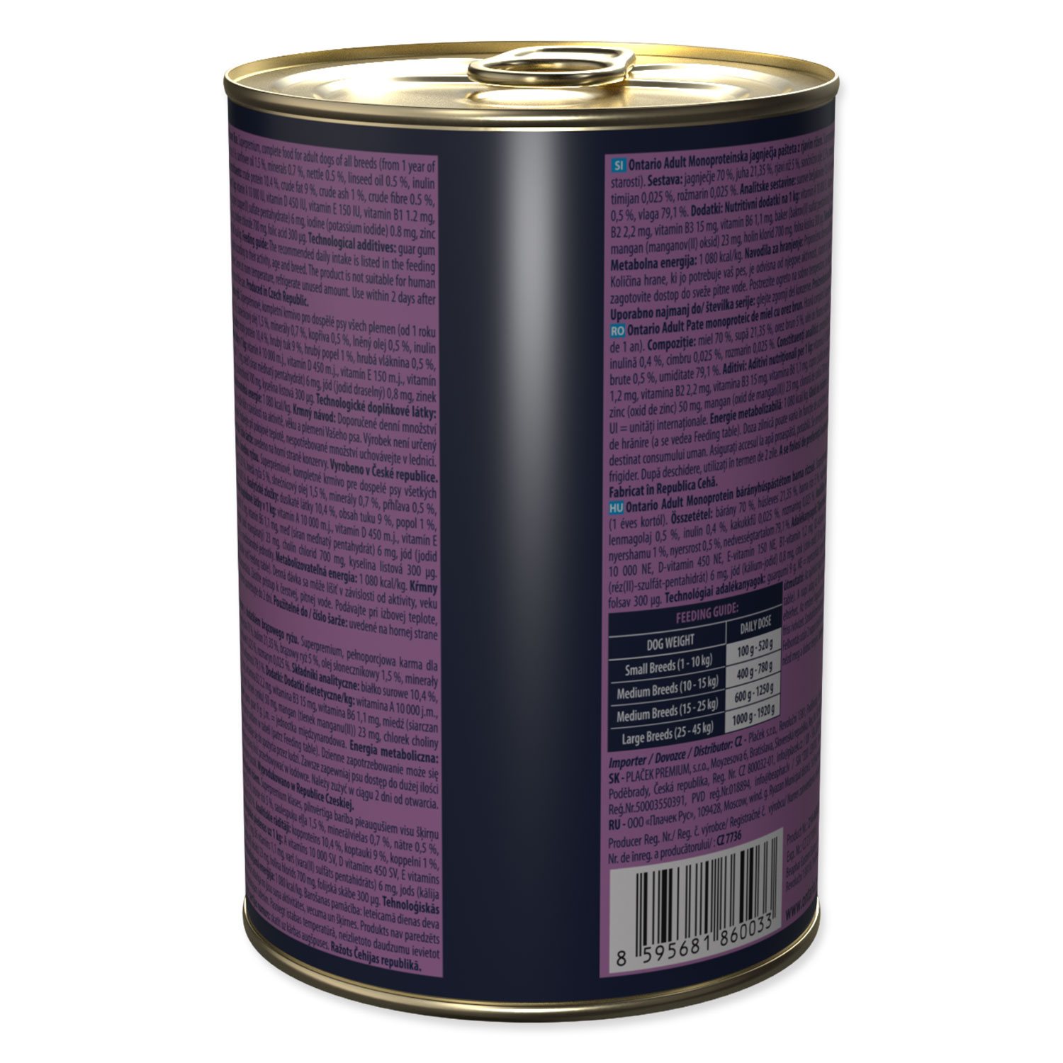 Podrobný popisKonzerva Ontario Adult monoprotein jehněčí pate s hnědou rýží