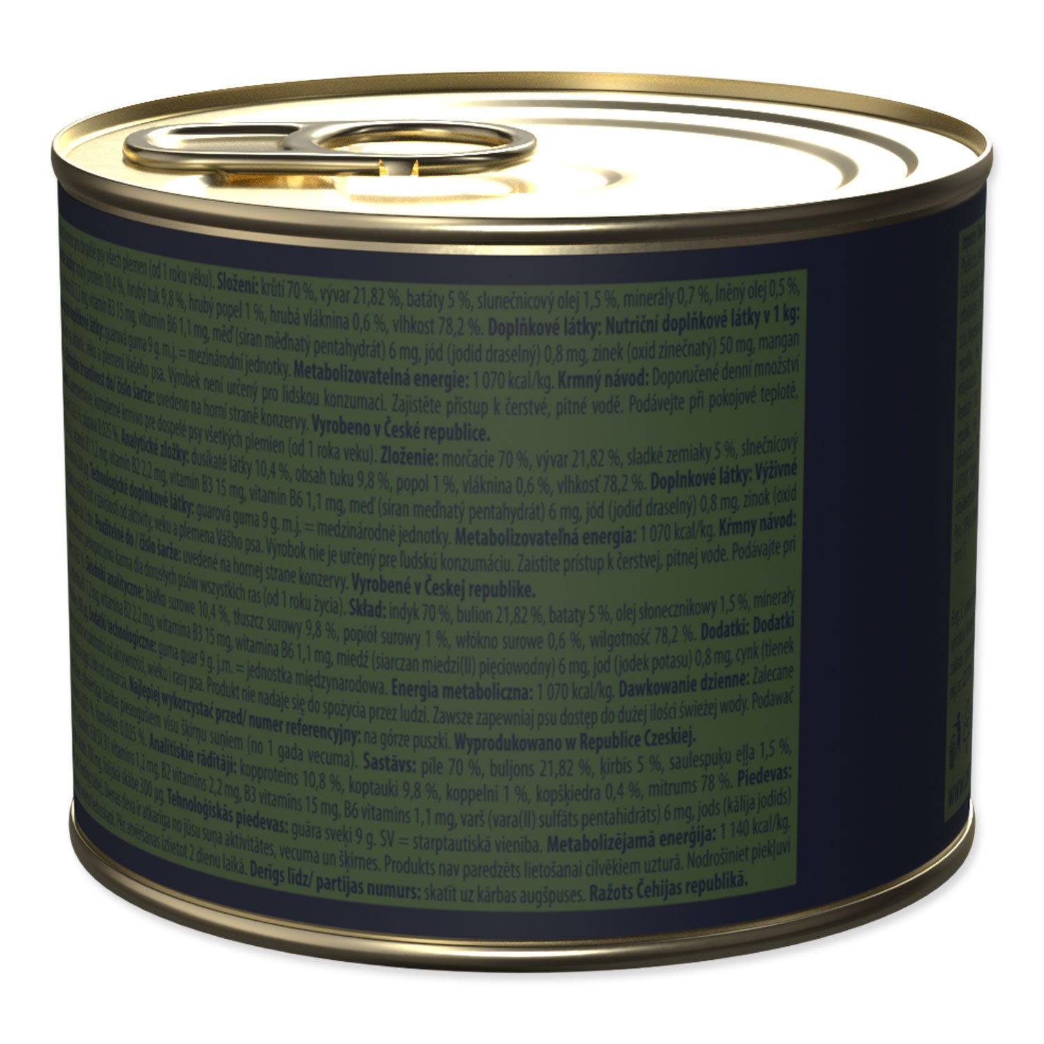 Kachní maso je výživný monoprotein, ideální pro citlivé zažívání. Receptura s dýní je speciálně vyvinuta tak, aby minimalizovala zažívací potíže.