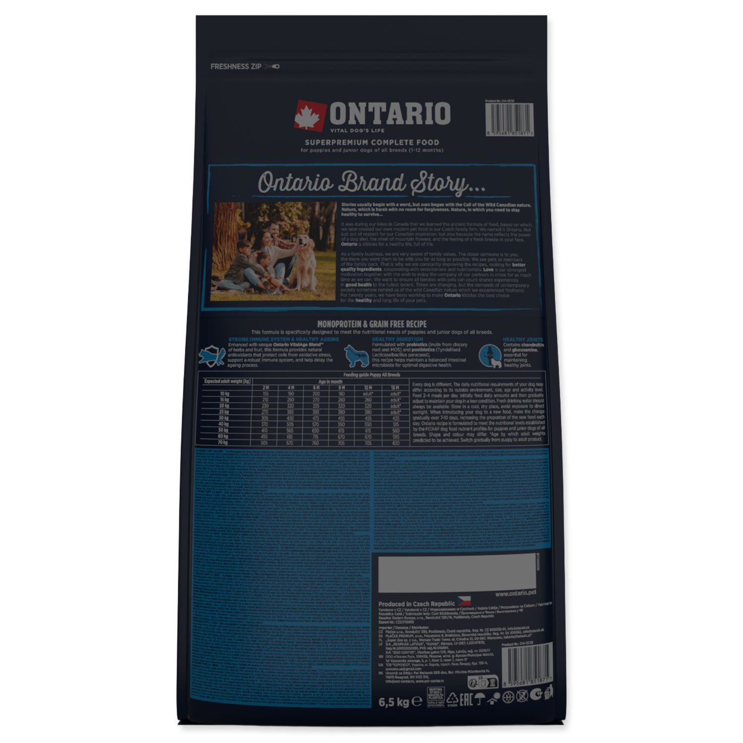 Ontario VitalAge Blend™ je určen pro prevenci stárnutí a je nejúčinnější, když je zaveden již od raných fází života zvířete (od štěněcího věku) až po seniory, čímž přispívá k dlouhodobému zdraví a vitalitě.