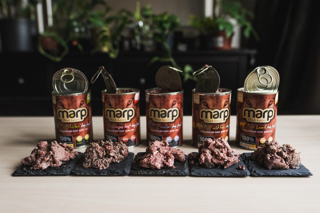 Konzervy Marp Pure obsahují 100% bílkovin ze živočišných zdrojů. Obsahují pouze maso, vnitřnosti, vývar a minerály. Nepoužíváme žádné umělé konzervanty, barviva, plnidla apod a jsou vždy bez jakýchkoliv obilovin. Konzerva Marp s hovězím bez obilovin je vhodná pro psy s citlivým zažíváním a dle našich zkušeností je velmi vhodná i pro psy s potravními alergiemi.