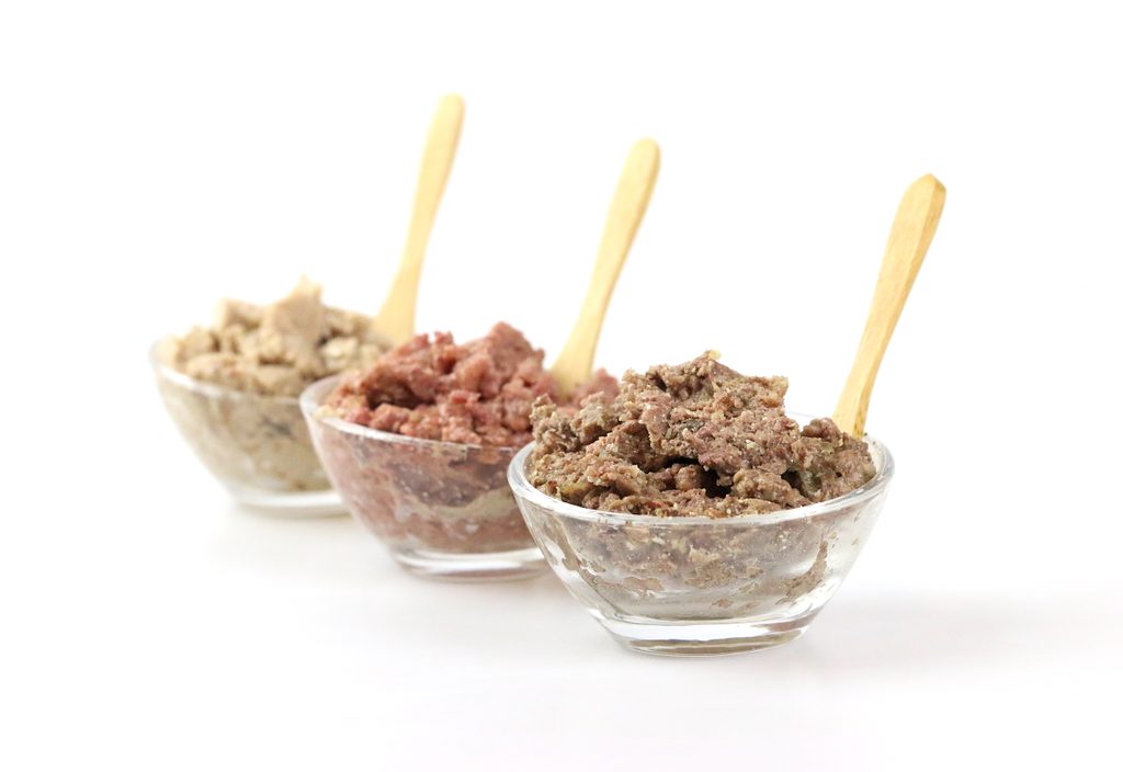 70% (Hovězí srdce, Hovězí maso, Hovězí játra, Hovězí plíce), 28,5% Vývar, 1% Minerály, 0,5% Slunečnicový olej.