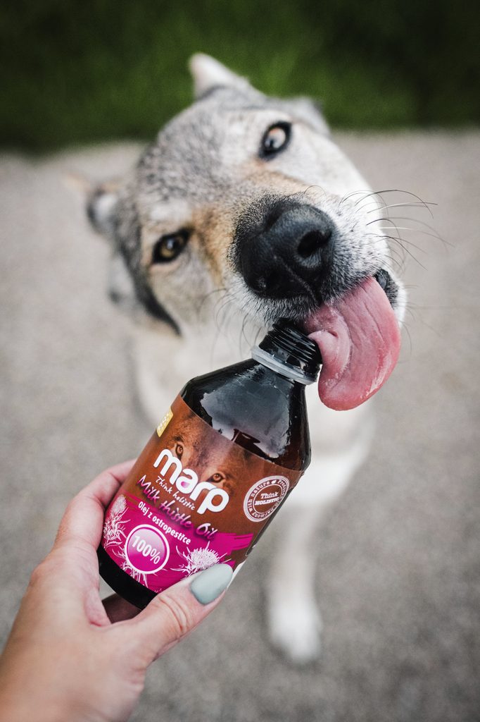 100% za studena lisovaný olej z ostropestřce - doplňkové krmivo pro psy a kočky
