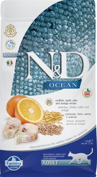 N&D OCEAN Cat LG Cod, Spelt, Oats & Orange Adult 1,5 kg