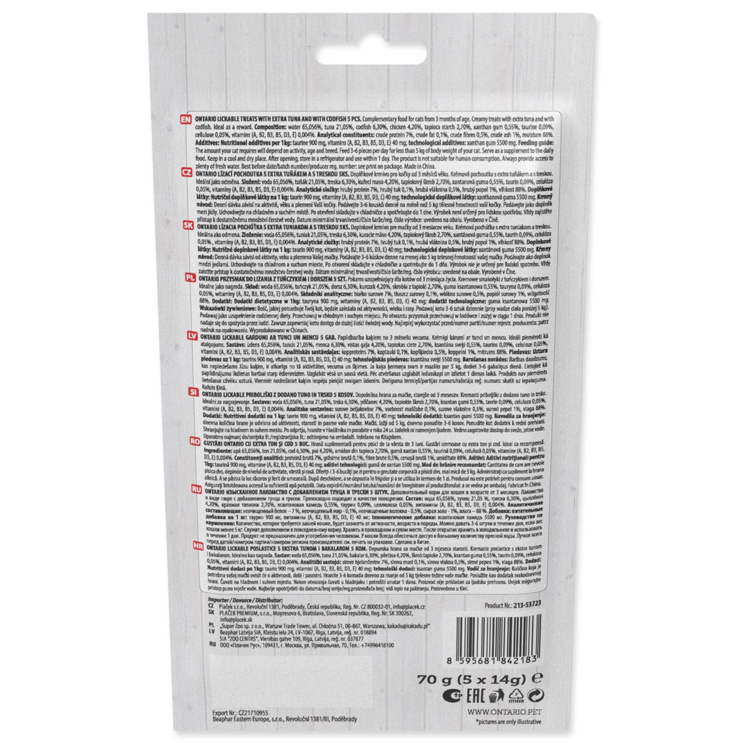 Pochoutka Ontario lízací extra tuňák a treska 5x14g
