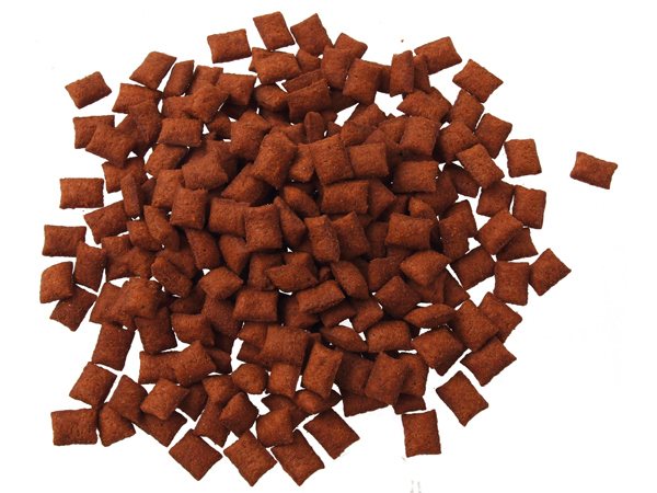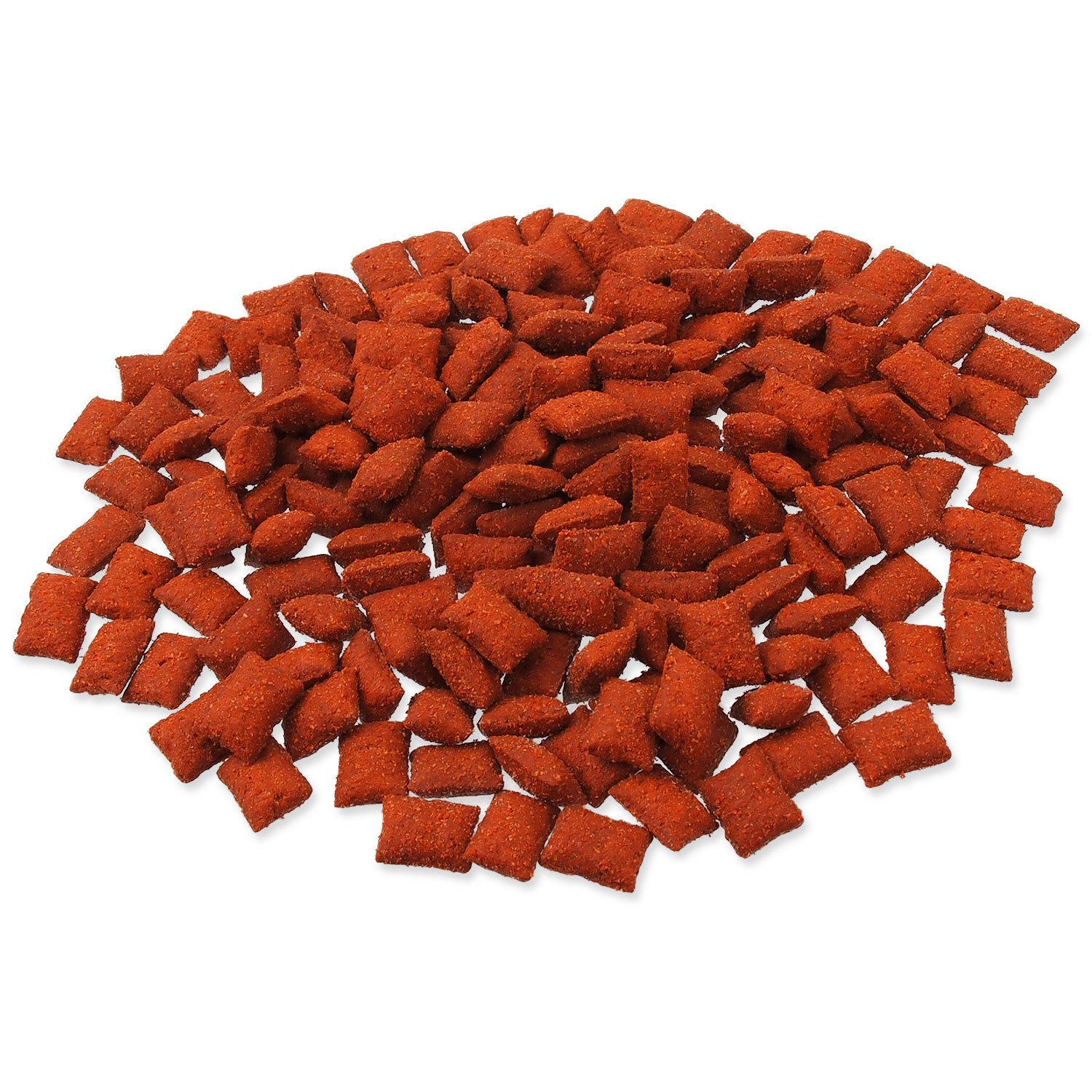 Extrudovaná pochoutka s obilovinami a vůní masa.