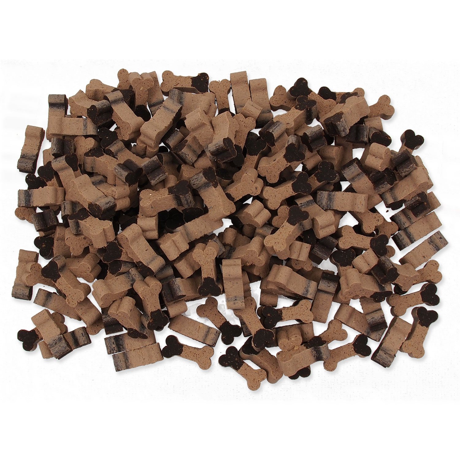 Pochoutky ve tvaru kostí s játry a vápníkem. Velikost: 2,5 cm.