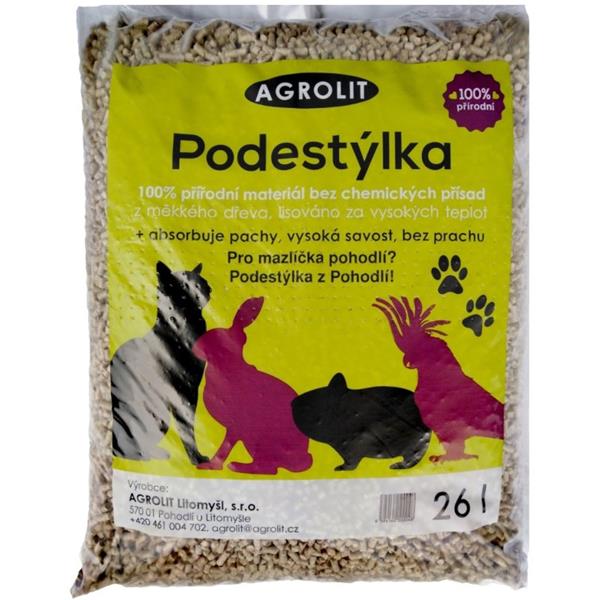 Podestýlka z lisovaných dřevitých pelet vyniká minimální prašností a dobrou absorpční schopností bez chemických příměsí a pojidel. Pelety jsou lisovány z kvalitních odkorněných pilin měkkého dřeva.